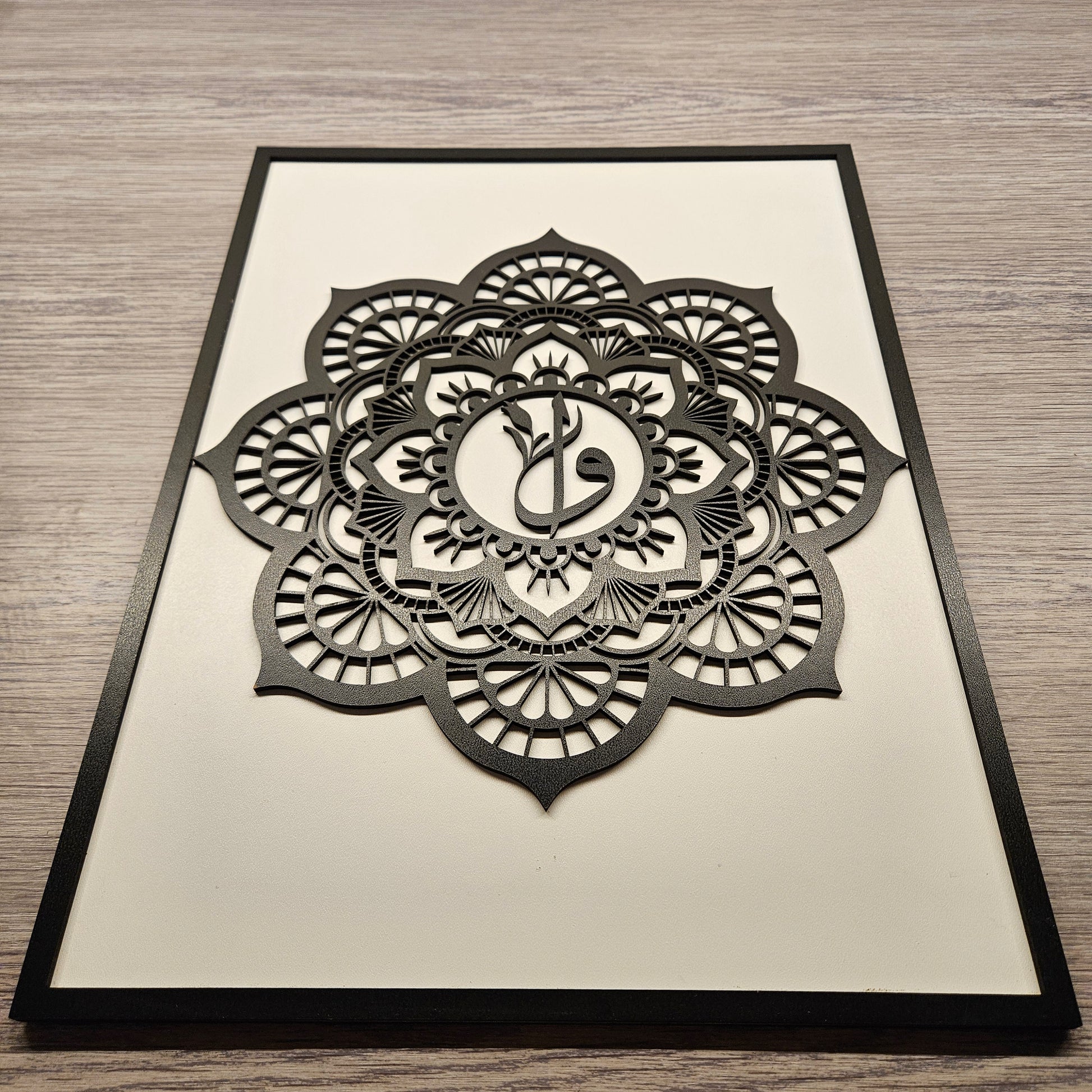 Unser islamisches Mandala Wandbild vereint die Schönheit der arabischen Buchstaben "Vav & Elif" mit einem faszinierenden Design. Die Lasertechnik verleiht dem Kunstwerk eine einzigartige Tiefe und Präzision, die es zu einem wahren Blickfang in jedem Raum macht.